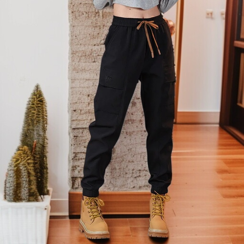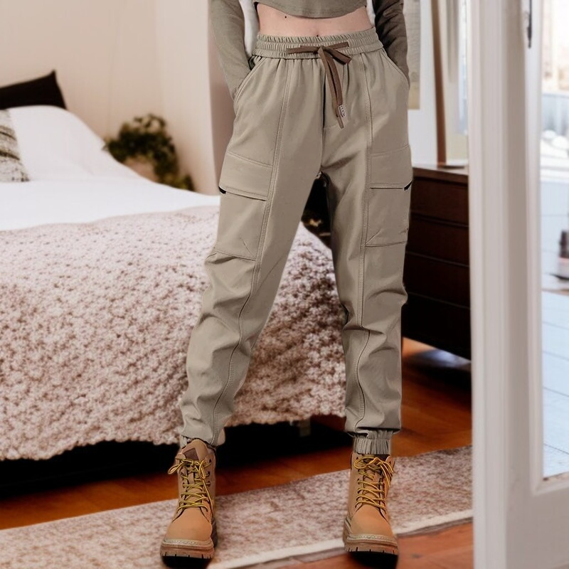 春メンズゆったりカーキワークパンツ カジュアルなドローストリングパンツ